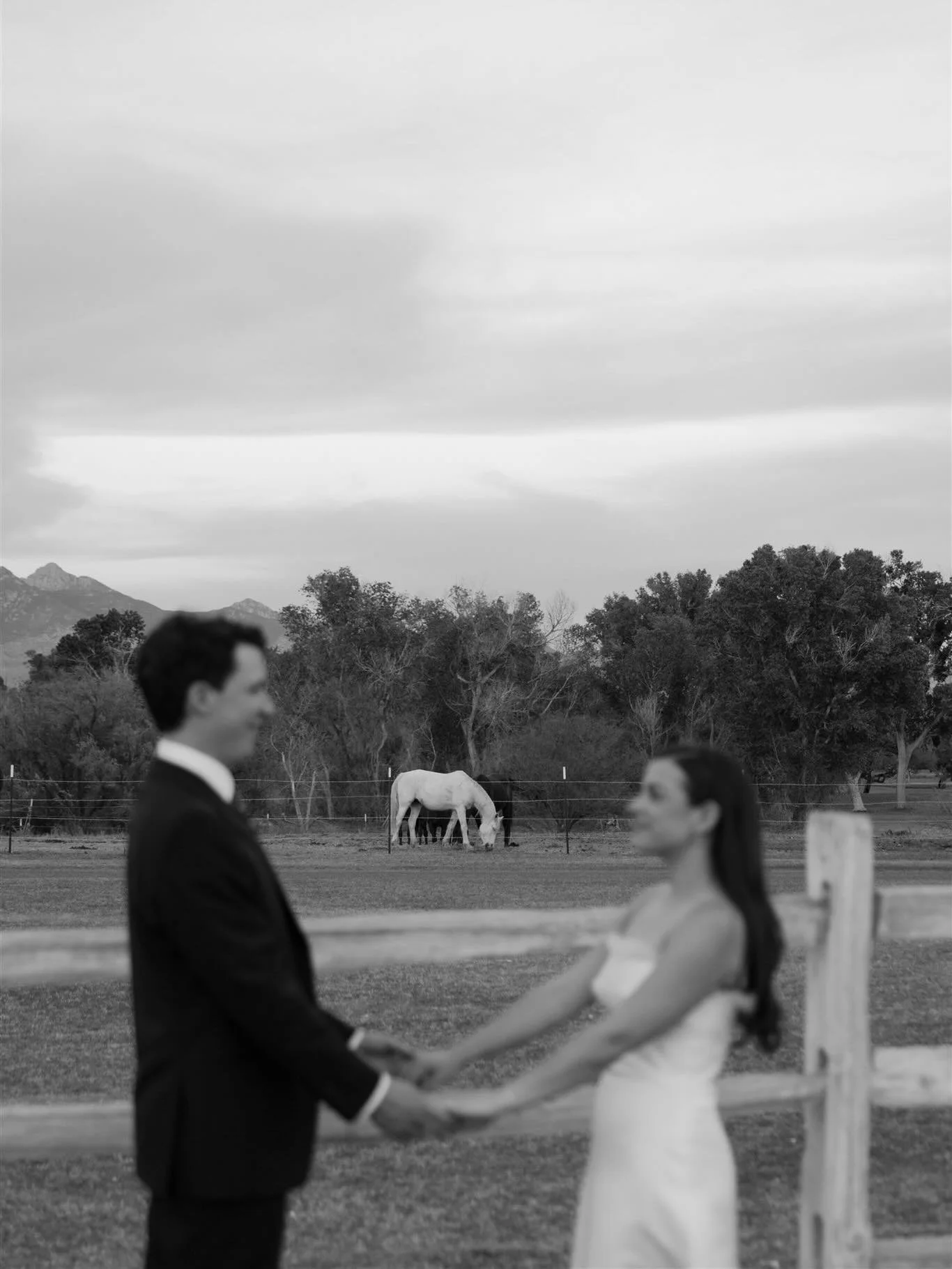 "Aaron and I went up to Prescott for a weekend just the two of us. We were both a little nervous about leaving Oliver for the whole weekend but also really excited to just hang out and relax and sleep through two entire nights. We went up Friday morning and just hung out, enjoyed the weather, watched a ridiculous amount of Gilmore Girls and went out to dinner. The next morning we went out to breakfast and came back to the cabin we were staying at to just sit on the porch and enjoy the gorgeous view of the forest that was the backyard. When we got back from breakfast, he picked up his guitar and started singing A Question by the Old 97s which I had told him years ago I wanted playing whenever the time came that someone proposed to me. It was very sweet but I wasn't really sure what was going on because after he got done he just put the guitar down and walked outside. He asked if I wanted to go look for some deer that we had seen in the shadows the night before so I agreed and we walked off the porch and started to walk towards the forest. After a few steps I realized he wasn't with me and turned around to see him on one knee. Then he said a bunch of stuff I don't remember because it was all very exciting and emotional. We spent the rest of the weekend just enjoying each other and calling friends and family about our happy news."